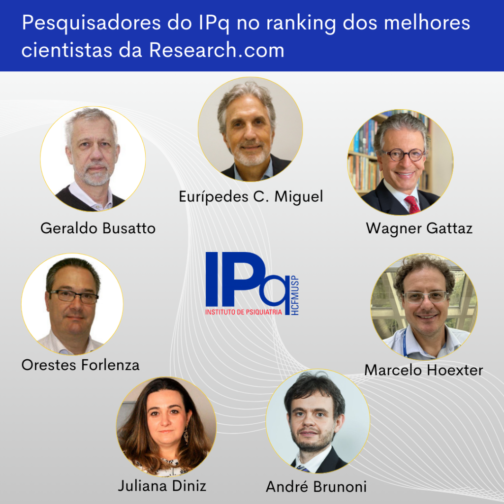 Os pesquisadores Geraldo Busatto, Eurípedes Constantino Miguel, Wagner Gattaz, Orestes Forlenza, Andre Brunoni, Marcelo Hoexter e Juliana Belo Diniz, do IPq, figuram entre os melhores cientistas brasileiros do ranking da plataforma acadêmica Research.com, nas áreas de medicina, neurociência e psicologia.
